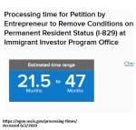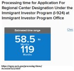 Or take the appalling 58.5-119 month “estimated time range” reported for Form I-924. How many regional centers have been discouraged by that report from even trying to file Form I-924, despite the importance of that form for project review and program integrity? And yet the report does not actually indicate that I-924 filed now will wait a long time. The processing times report does not claim to report future wait times, average recent wait times, or the age of the inventory. The report merely reflects the fact that half of petitions recently processed happen to have been waiting a long time. At last report, there were only 149 Form I-924 still pending at USCIS. In 2018, USCIS processed that many I-924 every quarter. Who then accepts the current estimated time range of 5-10 years as any reflection on normal processing?