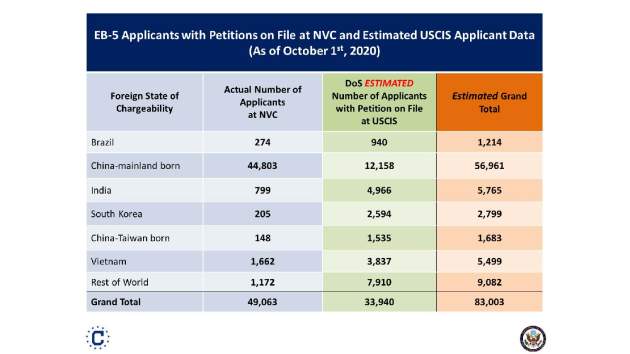 What difference would a October 1, 2022 effective date make? That delayed effective date would help anyone who is not from China and who does have enough time to push through the I-526/visa process and get green cards under current rules before October 2022. Otherwise, the delayed date doesn’t change much since new wait time estimates mainly depend on the number of China-born people in line, and that number may not get a chance to change very significantly in the coming 1.5 years under the current visa process.