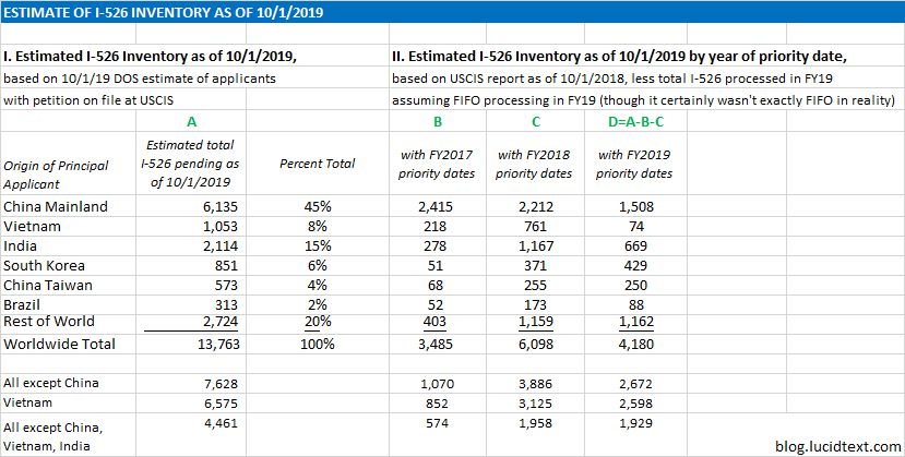 Number of EB-5 applicants at NVC as of 10/1/2019 |