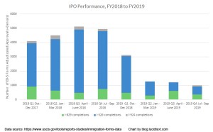 - Charles Oppenheim of Department of State estimated in October 2019 (a) that Indians filing “today” faced a 6.7 year visa wait, and (b) that India could possibly be “current” in the October 2020 visa bulletin. How could (a) and (b) both be true? Answer: if most of the India backlog stays stuck at USCIS, instead of advancing to the visa stage. Currently, I-526 processing is creating the visa bulletin for India, as Department of State moves the Final Action Date depending on how many I-526 approvals for Indians come out of USCIS, and the priority dates on those approvals. The “visa availability approach” concept predicates I-526 processing priority on visa availability. The current India situation shows how visa availability results from I-526 priority. I don’t know whether USCIS has considered how to handle such a Catch 22.