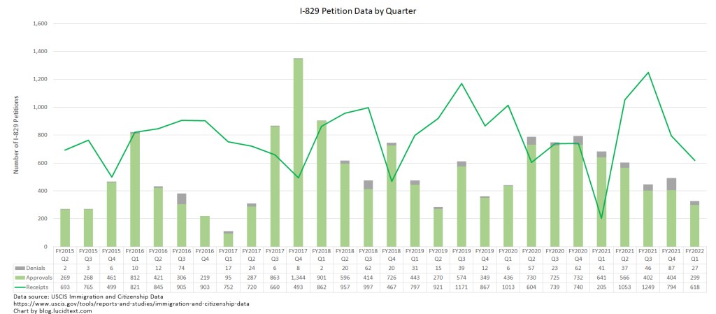 - I-526 receipt numbers were impressively high in Q1, considering that only direct cases could be filed in October to December 2021.