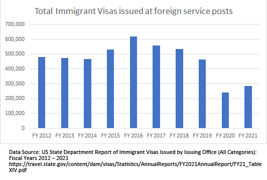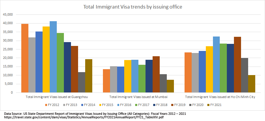 - US State Department Report of Immigrant Visas Issued by Issuing Office (All Categories): Fiscal Years 2012 – 2021