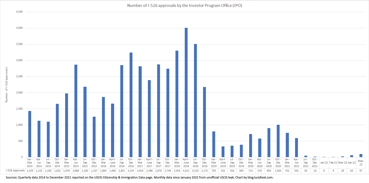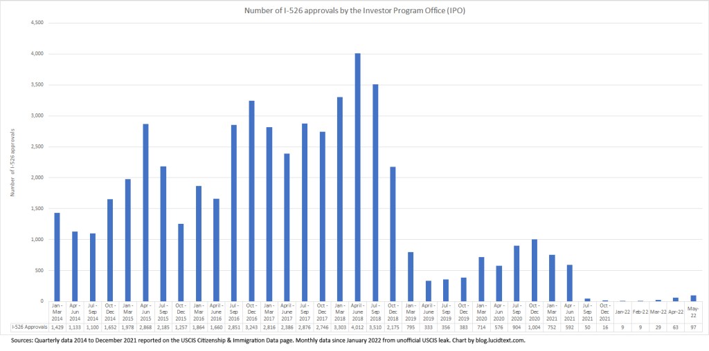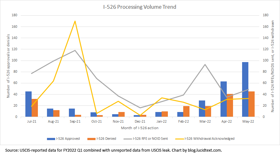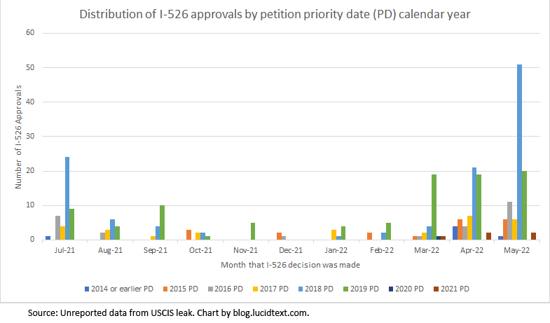 (I could also discuss I-829 processing data, with similar concerns, but consider the I-526 problem in most urgent need of publicity as an integrity, public policy, and market issue.)