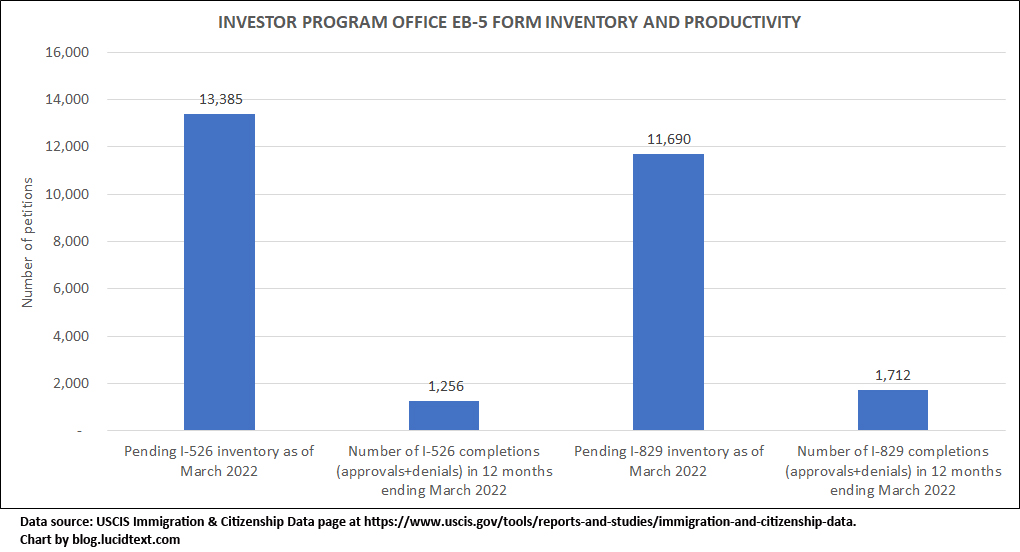 For further insight into the context of EB-5 processing, I recommend the CIS Ombudsman 2022 Annual Report to Congress. “This year’s Report examines the ‘snowball effects’ and pain points associated with backlogs and recommends actions USCIS can take to address not only the human consequences suffered by applicants, families, and employers but also the detrimental impacts on the agency … This article examines how the agency arrived at the crisis of backlogs which is now threatening to overwhelm it and highlights some of the steps it is taking to overcome this challenge.” A really excellent report: thoughtful, substantial, and sympathetic. EB-5 stakeholders should note the insightful analysis of resource constraints (not EB-5-specific, but applicable), and the detailed discussion of the EAD and Advance Parole processes and the expedite process. Regarding parallel issues with Department of State and consular processing, see the study Mounting Backlogs Undermine U.S. Immigration System and Impede Biden Policy Changes (February 23, 2022) by the Migration Policy Institute. See also U.S. Citizenship and Immigration Services: Actions Needed to Address Pending Caseload by the Government Accountability Office (August 18, 2021).
