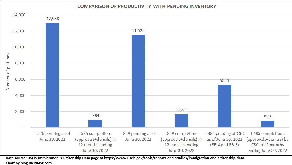 I-526, I-829, and I-485 Processing (FY2022 Q3 report and leaked data)
