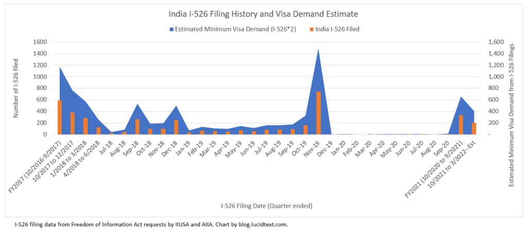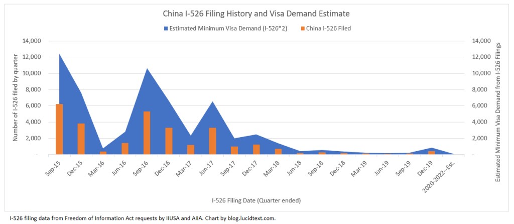 There’s a non-trivial risk that unreserved EB-5 could have Visa Bulletin cut-off dates for every single country (as is the case for EB-1 to EB-4) in 2025 or 2026. This could happen if DOS continues to let rest-of-world visa demand pile up from year to year while USCIS keeps adding to the NVC waiting list by approving I-526 from a variety of countries. The investor association AIIA has consular processing problems on its agenda, and we should support efforts to investigate and address this important problem area.