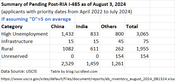 August 2024 I-485 report with data for EB-5 Set Aside and Unreserved categories