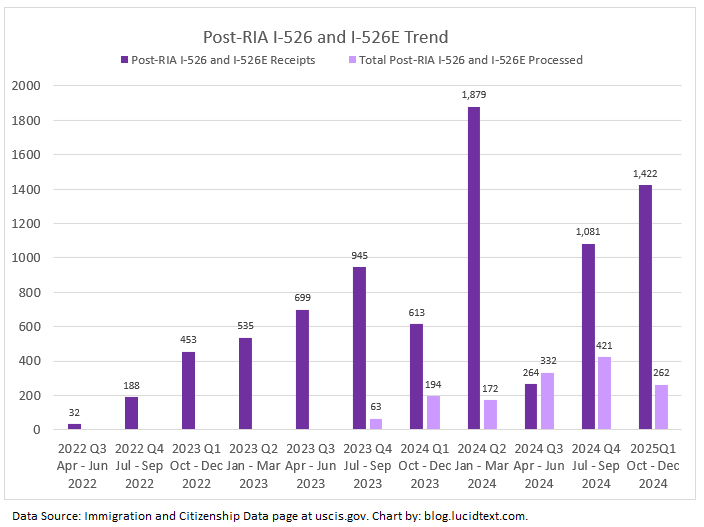 The FY2025 Q1 report is notable for including, for the first time, median processing times for post-RIA I-526 and I-526E.