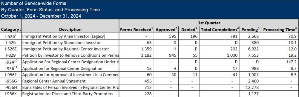 5 Responses to EB-5 processing volumes fall in USCIS FY2025 Q1 data report