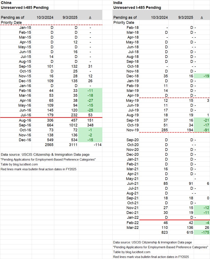 I-485 processing to September 2025