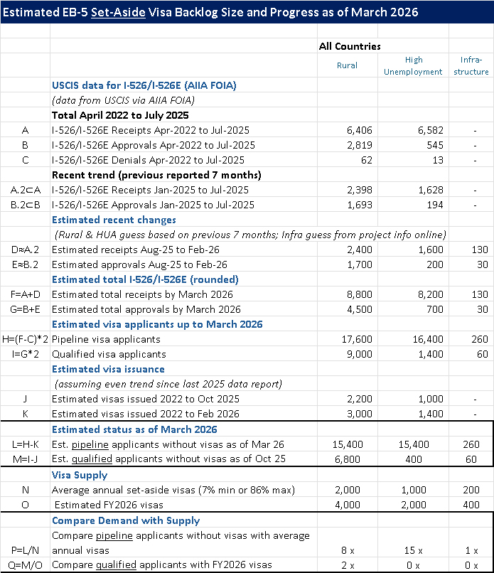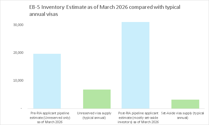 EB-5 Set-Aside Visa Backlog and Outlook Update as of March 2026 (set-aside backlog size, Unreserved visa availability, Infrastructure, Visa Bulletin outlook)