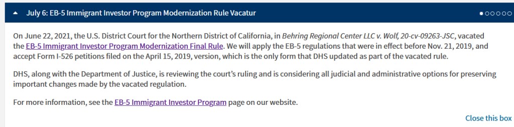 USCIS has yet to publish guidance for how exactly they will handle regional center petitions during this program lapse/expiration. There’s informed speculation that the policy will initially be similar to what was published in December 2018 during the last lapse. I will report when the USCIS website gets updated. (In the meantime, attorney Robert Divine has a helpful article on practical implications of a lapse.)