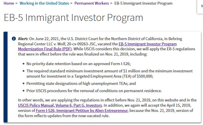 The July 2021 visa bulletin gives the Department of State policy on visa issuance during the lapse/expiration for regional center (i.e. I5 and R5) visas. “The I5 and R5 visas may be issued until close of business on June 30, 2021 and may be issued for the full validity period. No I5 or R5 visas may be issued overseas, or final action taken on adjustment of status cases, after June 30, 2021. Since there has been no legislative action at this time, the final action dates for the I5 and R5 categories have been listed as “Unavailable” for July. If there is legislative action extending this category for July, the final action dates would immediately become “Current” for July for all countries except China-mainland born I5 and R5, which would be subject to a November 8, 2015 final action date and Vietnam I5 and R5, which would be subject to an April 1, 2020 final action date.” Any questions regarding what’s in the visa bulletin can be directed to the blessed Charles Oppenheim, who will be hosting another “Chat with Charlie” live on Youtube on Monday, June 28, 2021 at 1:00 PM Eastern Time. (Per the visa bulletin, one can email questions to VisaBulletin@state.gov ahead of the event with “Chat with Charlie Question” in the email subject line.)